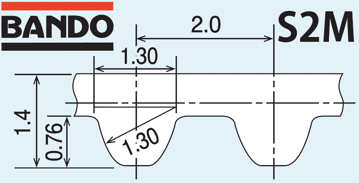 Bando STS S2M (шаг зуба 2 мм), стандартная ширина зубчатого ремня 4, 6, 10, 15, 20 мм.