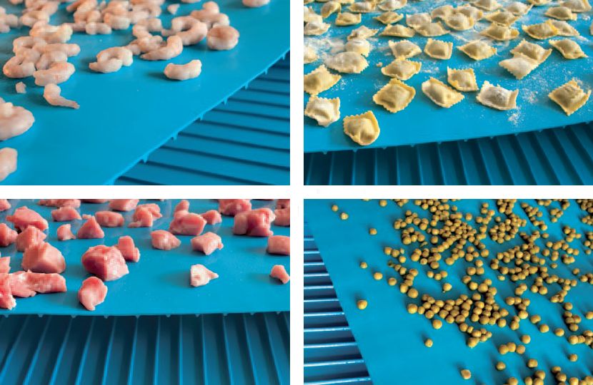 Полиуретан из которого изготавливается лента имеет пищевой допуск FDA, сопротивляется воздействию воды и моющих средств. Гладкая транспортирующая поверхность очень легко чистится.