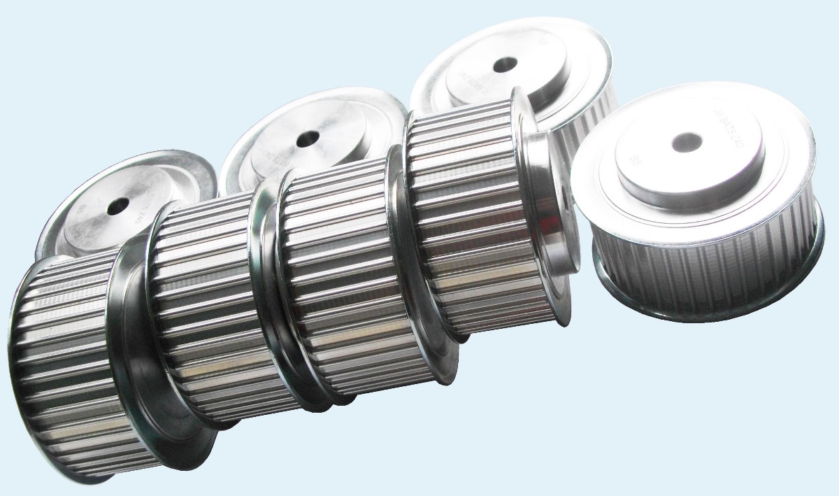 Алюминиевые зубчатые шкивы профиля AT5 используются для построения приволов с жёсткой синхронизацией ведущкго и ведомого вала. К преимуществам зубчато-ременной передачи можно отнести компактность, стабильность межосевого расстояния, относительно низкий шум и вибрация. Изготовливаются, как правило, шкивы АТ5 из алюминия и в целом стойкости этого материала достаточно. При необходимости можно изготовить зубчатые шкивы из других материалов, например углеродистая сталь, нержавеющая сталь.