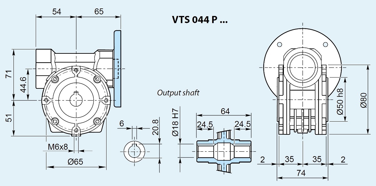 Размеры присоединительного фланца электродвигателя для мотор-редуктора VTS 044: