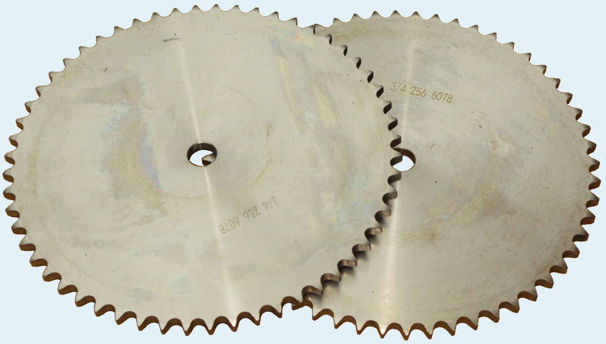 Крок ланцюга 12B-1 складає 19,05мм, діаметр ролика 12,07 мм - обов'язково враховуйте ці параметри, щоб не переплутати його з ланцюгом 12А-1. Зірочка виготовляється з вуглецевої сталі С45, зубці без термообробки.