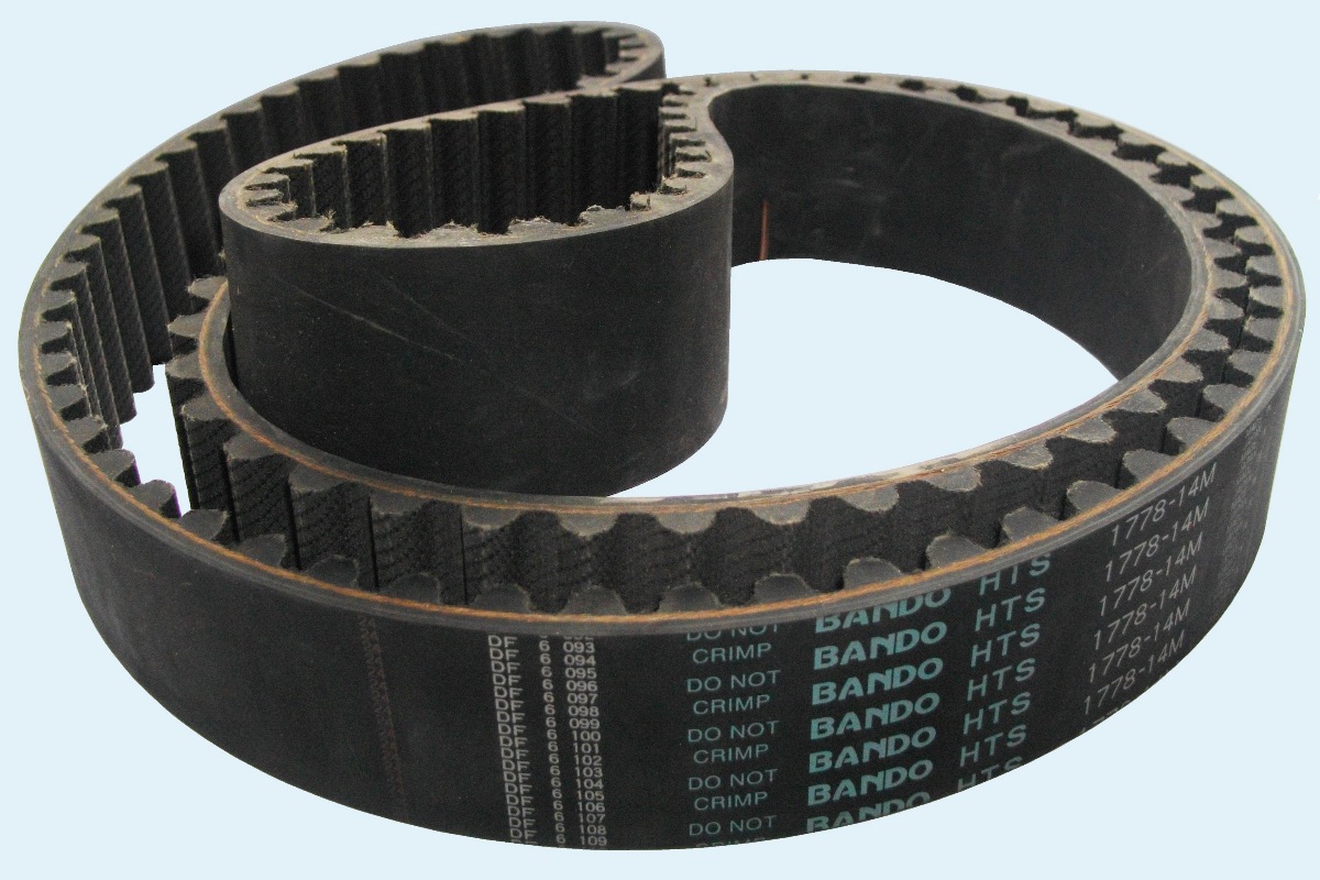 Ремни Bando HTS 1778-14M изготовлены из резины, имеют стекловолоконный корд и защитное покрытие тканью на зубчатой стороне ремня.